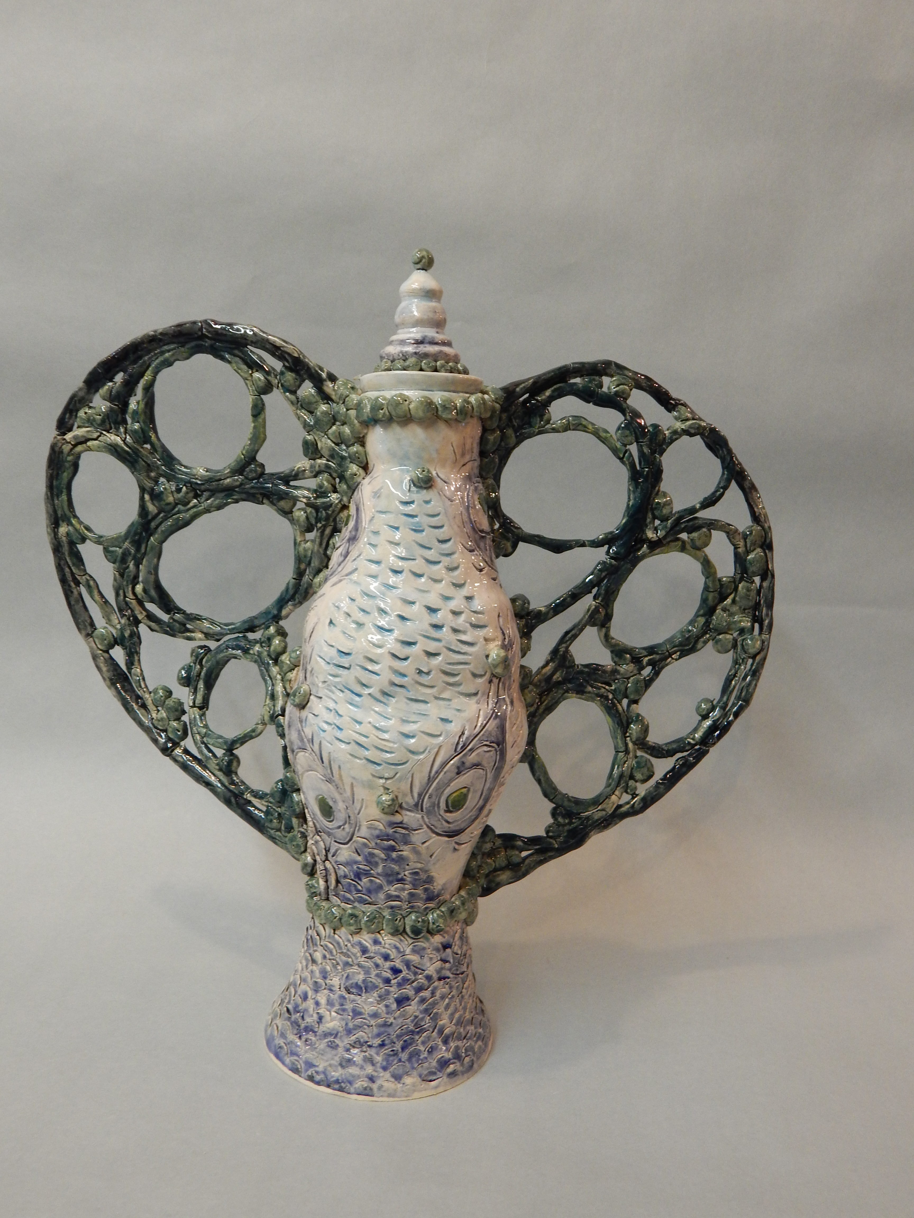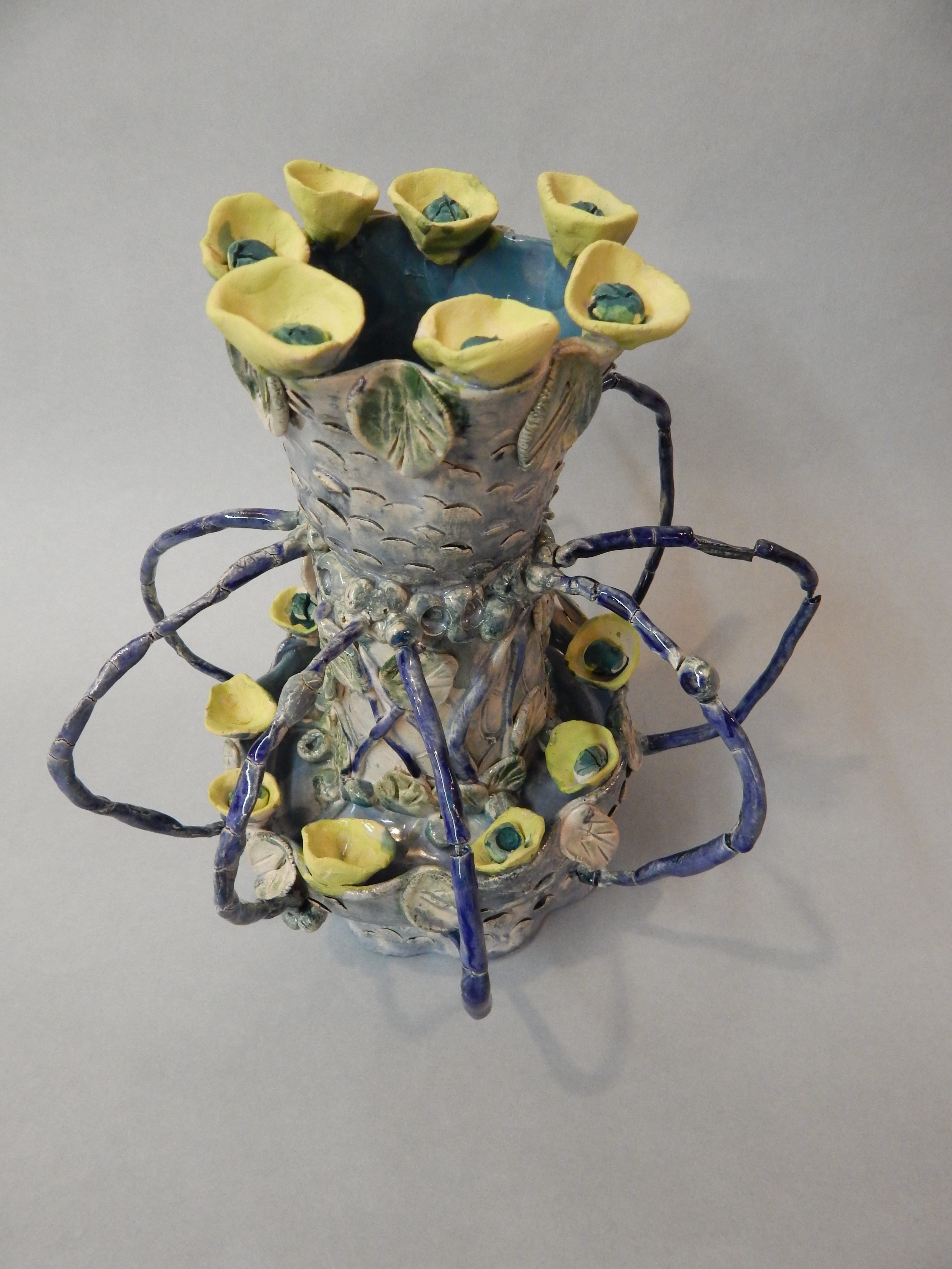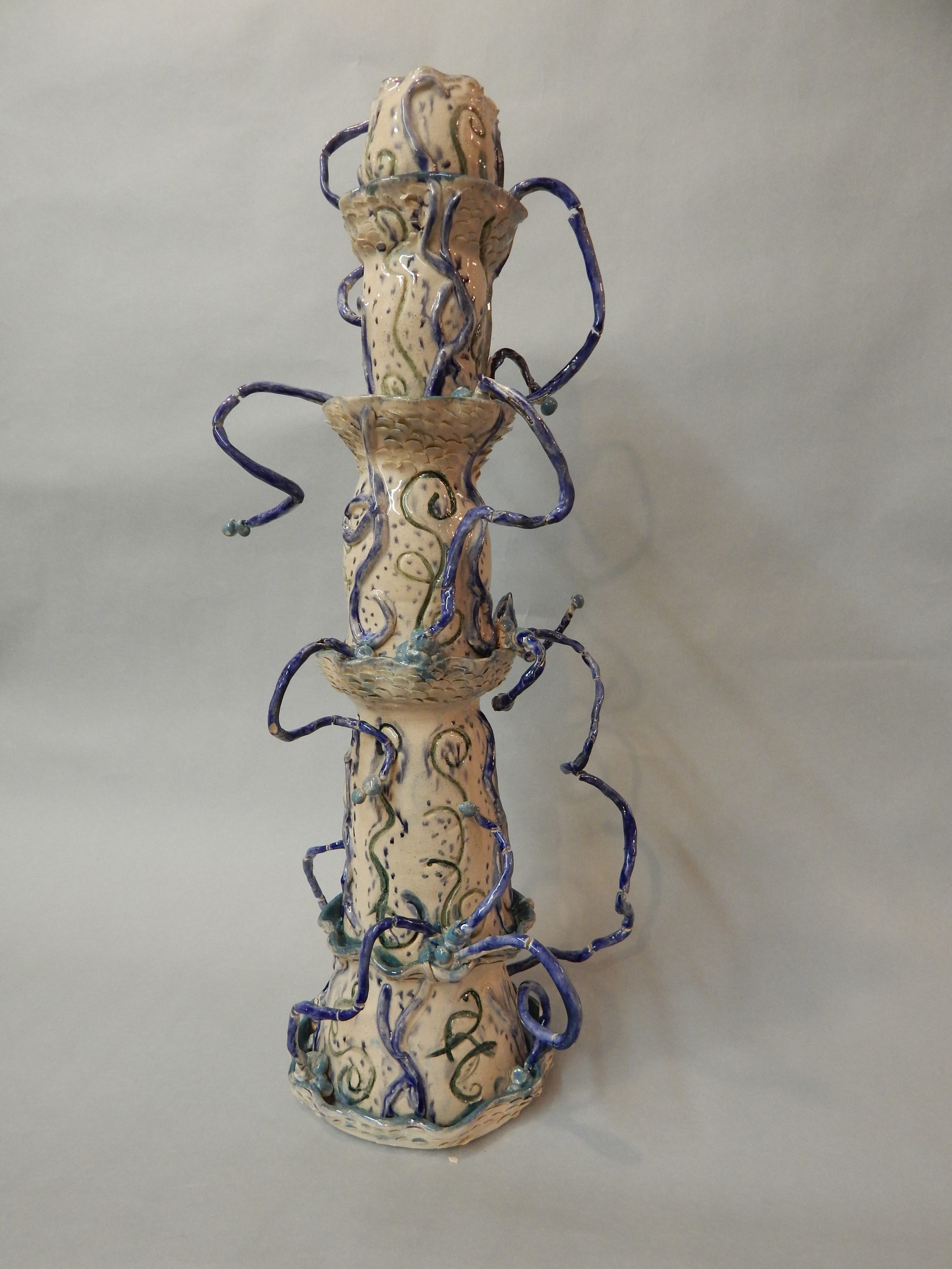 Blue & White 2016 Waterfall Pagoda White Stoneware, ceramic mixed media Blue India ElephantStoneware mixed media Bird in a basketCeramic mixed media Whirling Sea BasketStoneware mixed media Cactus BlossomStoneware mixed media